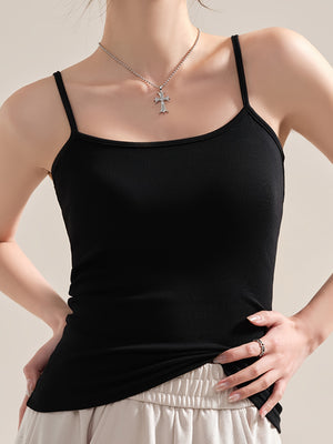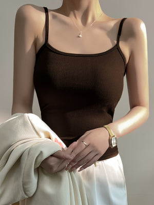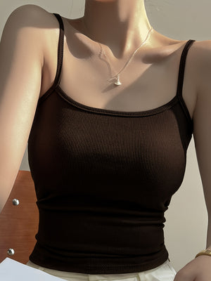 This opaque cami top offers versatile styling options for both outerwear and innerwear. The solid color design features elegant ruched detailing, while the knit fabric construction provides micro elasticity for a comfortable fit. Lightweight and breathable, this sleeveless vest delivers both sophistication and practicality for everyday wear.