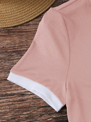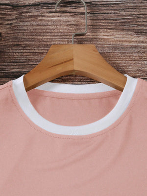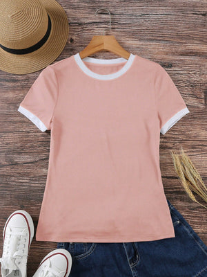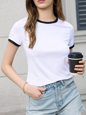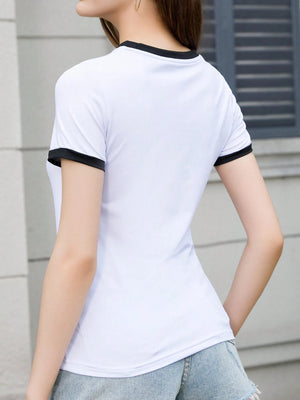 Contrast Binding Round Neck Tee Graphic Tees Women Tops