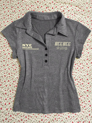 Letter Print Polo Collar Short Sleeve Casual T-Shirt