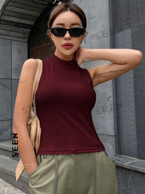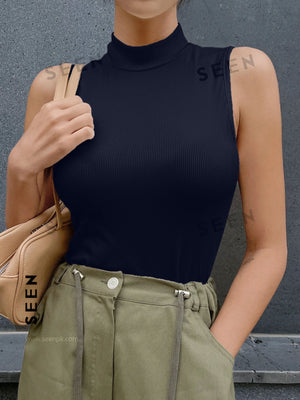 Indulge in the luxurious feel of our Neck Ribbed Knit Tank Top. The rib-knit texture and stand collar elevate this casual tank to a sophisticated level. Its slim fit and medium stretch fabric offer both comfort and style. Made with a blend of 90% polyester and 10% elastane.
