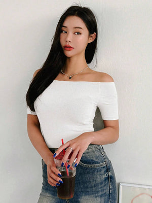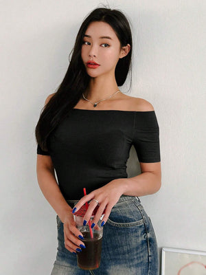 This playful off-shoulder crop top is perfect for adding a flirty touch to your everyday look. Made with soft rib-knit fabric, it hugs your curves with a slim fit and features short, regular sleeves for easy movement. Its casual style and trendy neckline make it a fun choice for daily wear, keeping you cool and confident all day long.