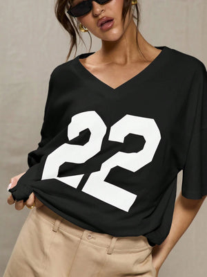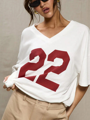 This oversized baseball t-shirt combines sporty aesthetics with casual comfort, featuring a drop shoulder design and asymmetrical details for a modern twist. Its V-neck and short sleeves offer breathability, while the color-block and letter patterns add subtle visual interest. Ideal for relaxed occasions at home or festive events like graduation, this tee provides a roomy fit that ensures ease of movement and all-day comfort throughout autumn and winter seasons.