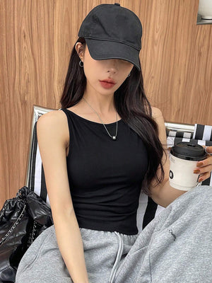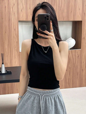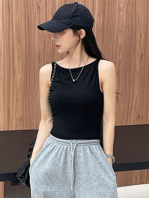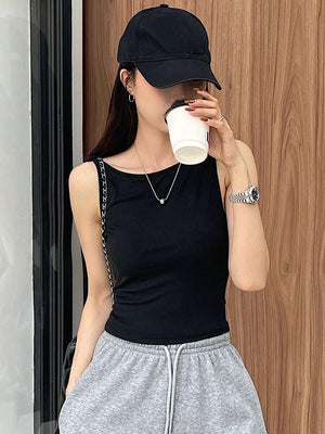 Round Neck Ribbed Knit Tank Top, Business Casual Style
