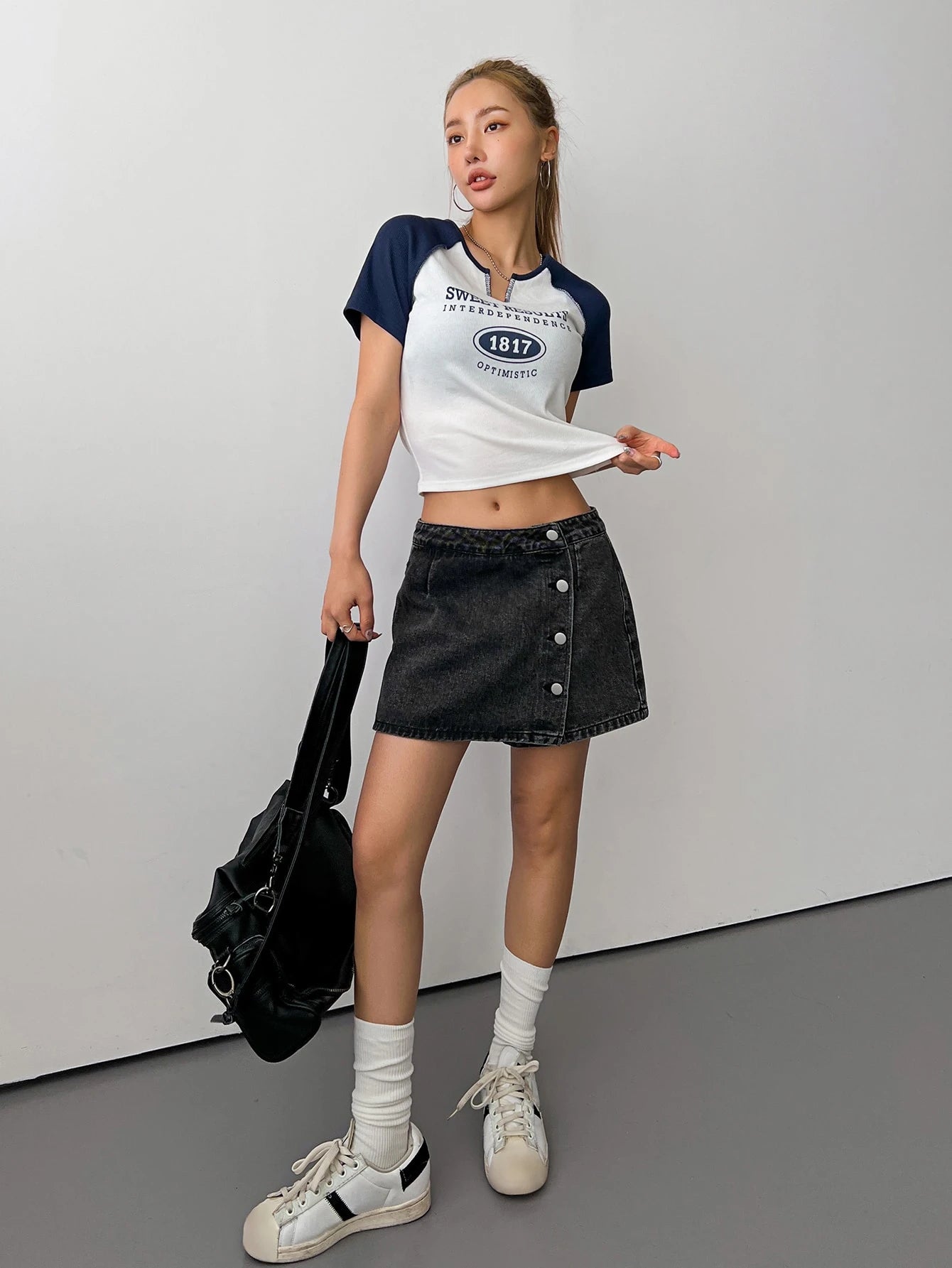 - Bold slogan print for expressive personal style