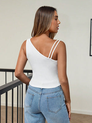 Turn heads every day with this Solid Asymmetrical Neck Top! Its playful asymmetrical neckline and rib-knit texture add a fun twist to your casual look. Sleeveless and slim fit, it’s perfect for staying cool and stylish while embracing effortless charm. Pair it with your favorite jeans or skirt for an easy, standout outfit.