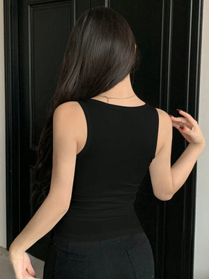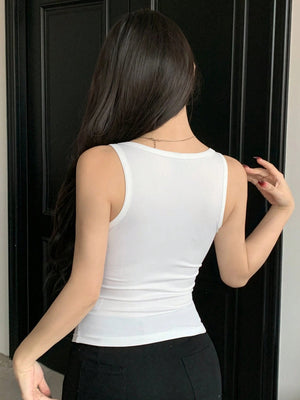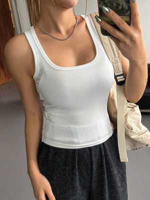 Stay cool and stylish this summer with our solid color cropped tank top. Featuring a playful scoop neckline and a slim, rib-knit fit, it hugs your silhouette while keeping things breezy with its backless design. Perfect for lounging at home or casual outings, this white crop top adds a fresh, fun vibe to your warm-weather wardrobe.