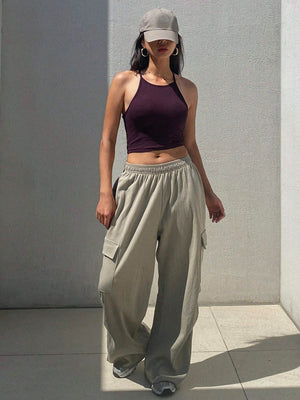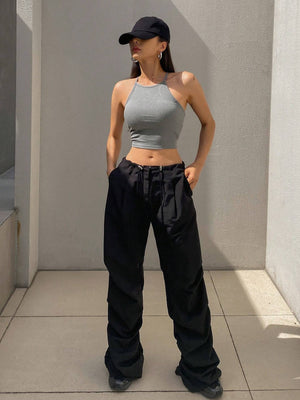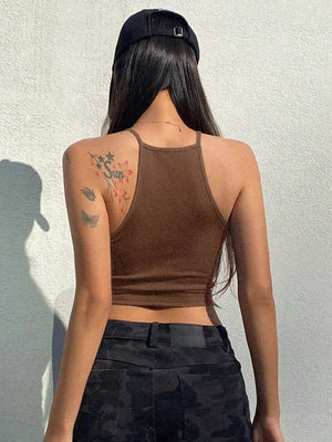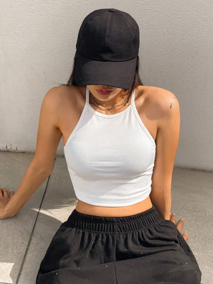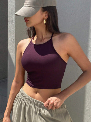 Turn heads with this playful solid color halter top, perfect for nights out or concerts. Featuring a flirty criss-cross back with a knot detail, this black crop top offers a regular fit that’s both comfortable and stylish. Its backless design adds a daring touch, making it an ideal choice for casual yet eye-catching looks.