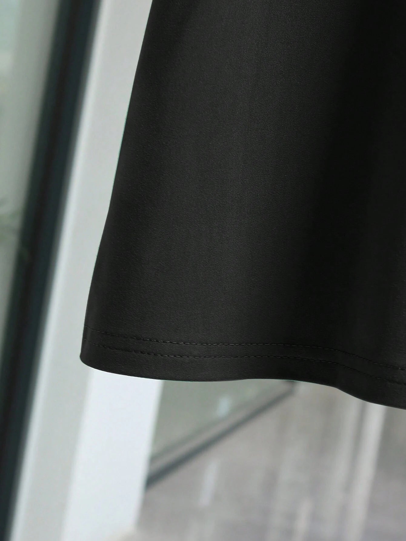 The classic V-neckline flatters your silhouette while the trendy drop shoulders deliver a relaxed, modern fit. The sophisticated black color provides a versatile foundation that pairs beautifully with any bottom, while the patchwork design adds visual interest and dimension. The long length offers extra coverage and modern proportions, making this tee perfect for everyday styling.