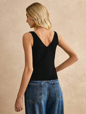 This solid ribbed knit tank top is your new summer essential. Featuring a deep V-neck and a backless design, it combines playful style with breezy comfort. The slim fit and regular length make it perfect for vacation days or casual outings, while the rib-knit texture adds a fun, tactile twist. Stay cool and effortlessly chic all season long!