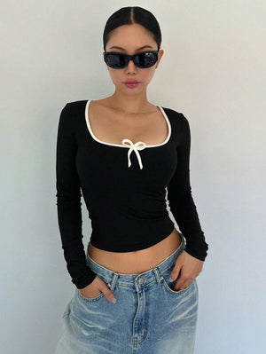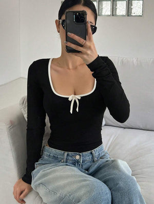 Ballet Style Bow Slim Fit Ladies T-Shirt