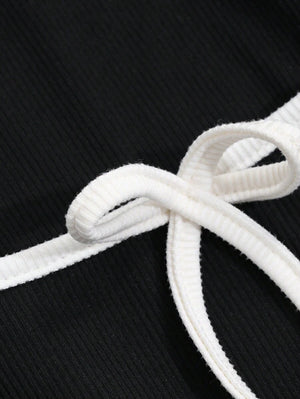 This ballet-inspired ladies' t-shirt features a contrast binding, bow, and knot details for a touch of elegance. With its high-stretch knit fabric and slim fit, it offers both style and comfort. Perfect for daily wear, this t-shirt also features a scoop neck and regular hemline in a sleek black color. Made of 90% polyester and 10% elastane.