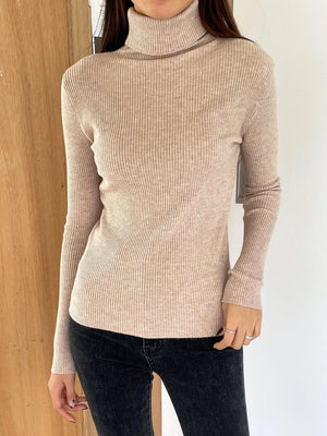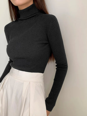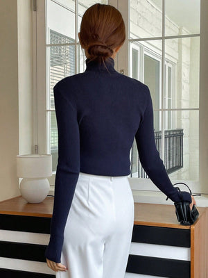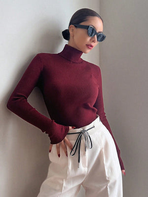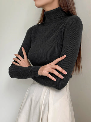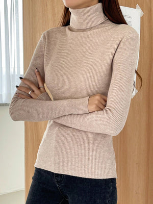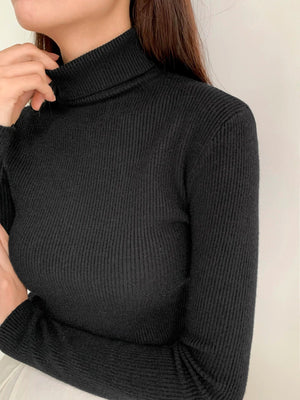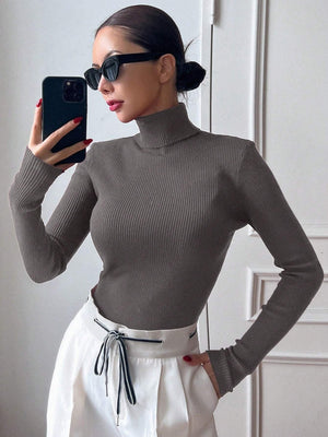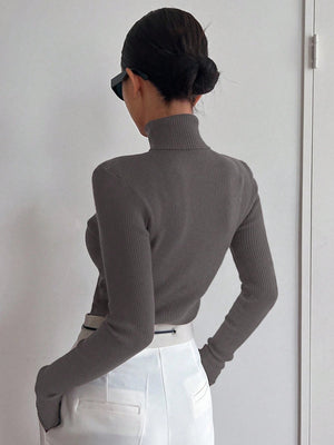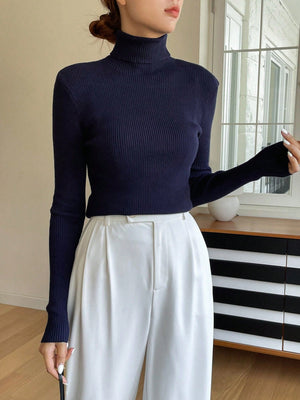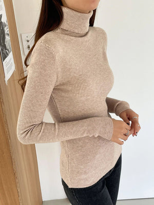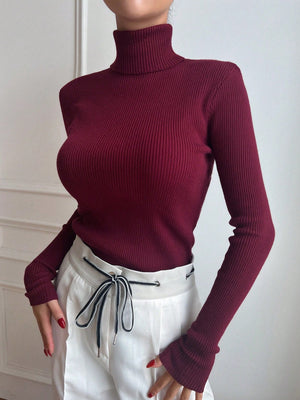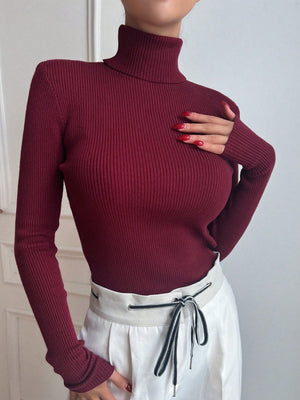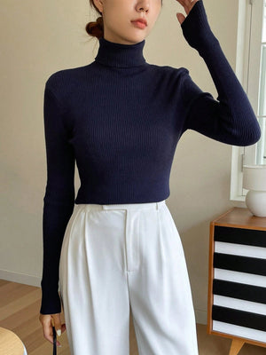 Basic Solid High Neck Long Sleeve Knit Sweater