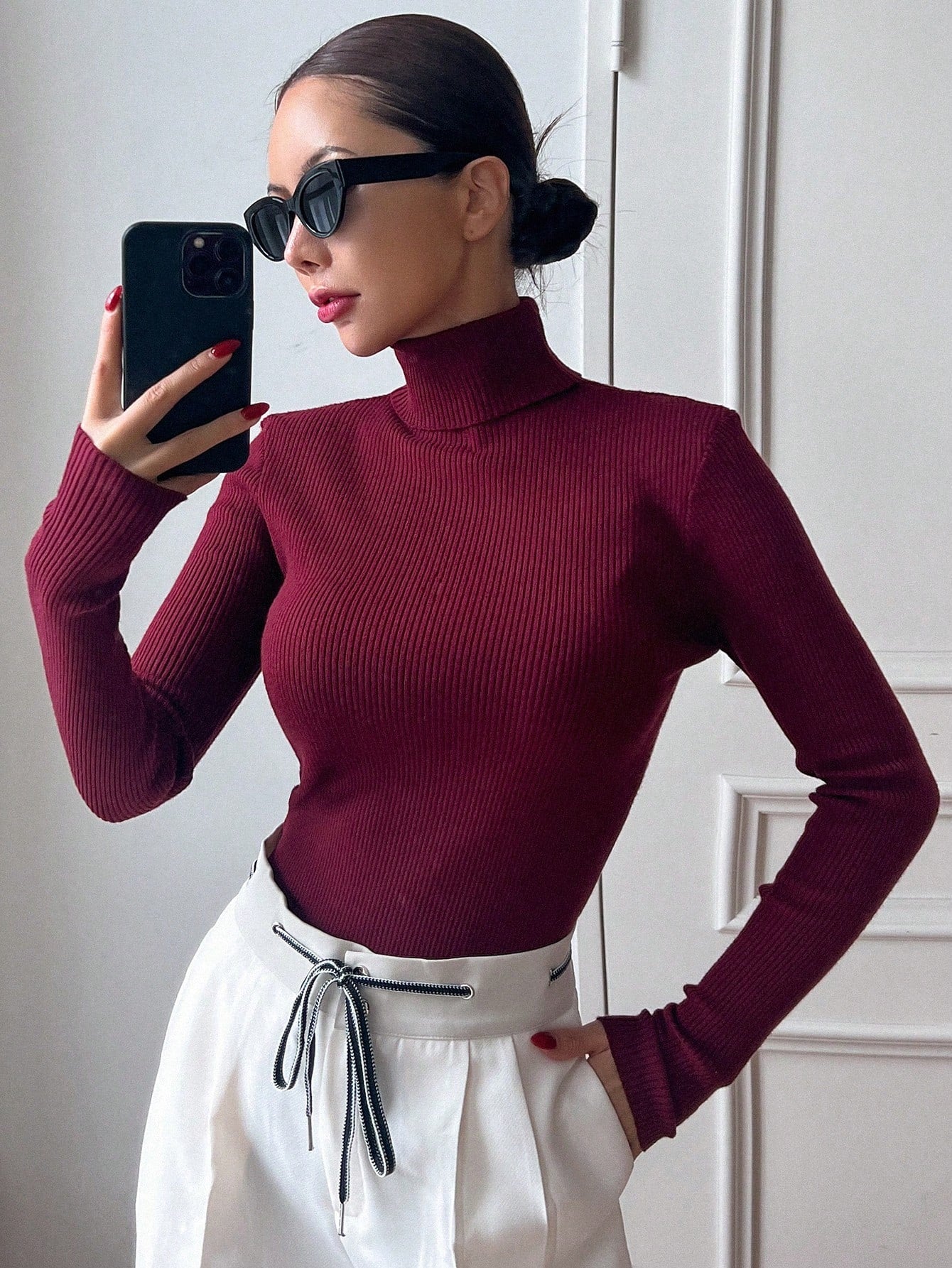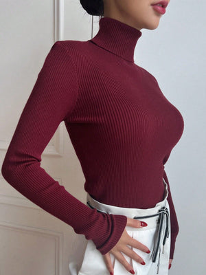 Embrace timeless elegance with this basic solid high neck knit sweater featuring a sophisticated rib-knit texture. The high stretch fabric and classic design make this an essential piece for your fall wardrobe, perfect for homecoming and graduation season celebrations.