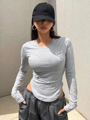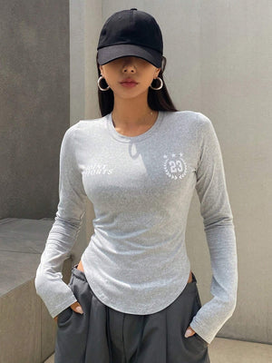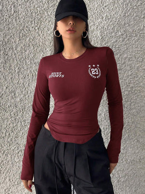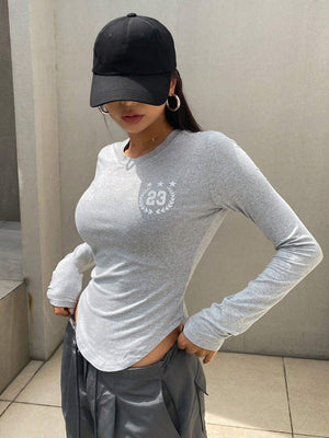 Campus Back To School Sports Jersey Short Sleeve Graphic Curved Hem T-Shirt Jersey