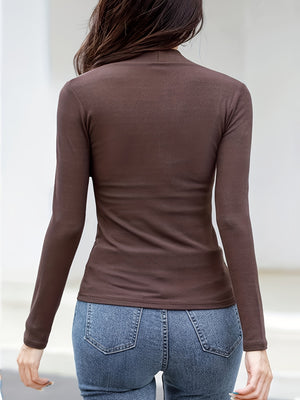 This woman's top offers both style and versatility. Its medium-stretch fabric provides a comfortable, regular fit, while the deep V-neckline and semi-sheer design add a touch of Japanese and Korean fashion. Perfect for spring and fall layering, this machine-washable top is made from 95% polyester and 5% elastane, ensuring durability and easy care. Elevate your wardrobe with this must-have piece.