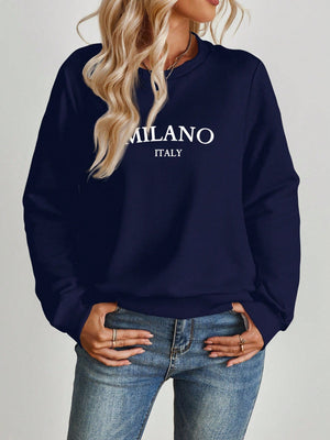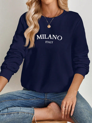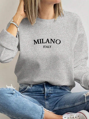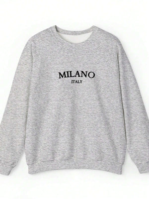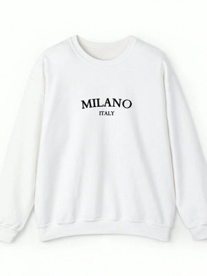 Embrace effortless style with this casual minimalist sweatshirt featuring a distinctive Milano print pattern. Crafted from 100% polyester knitted fabric with slight stretch, this white pullover offers the perfect blend of comfort and contemporary design. The loose fit silhouette and drop shoulder sleeves create a relaxed, modern look that's ideal for daily wear.