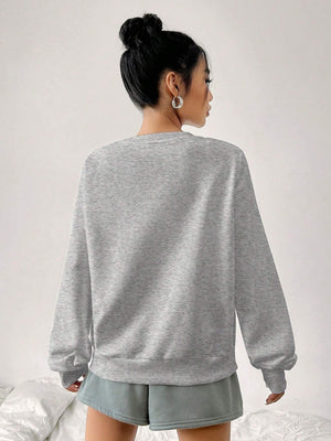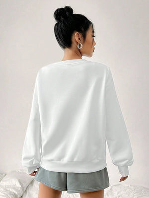 Casual Minimalist Milano Print Pattern White Round Neck Loose Fit Long Sleeve Sweatshirt