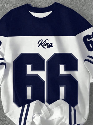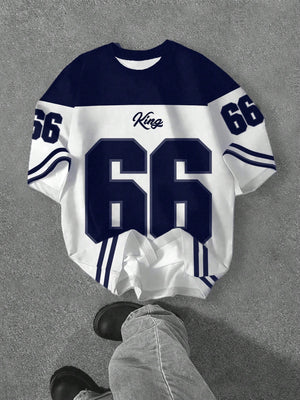 Casual Minimalist Numeric 66 Print Round Neck Loose Fit Short Sleeve T-Shirt