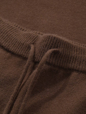 The unlined sweater features long sleeves and a regular length cut, while the coordinating wide-leg pants complete the look with modern elegance. Available in versatile colors including classic Black, rich Chocolate Brown, and timeless Navy Blue, this set effortlessly transitions from season to season. The knitwear material provides warmth during cooler months, making it your go-to choice for winter styling.