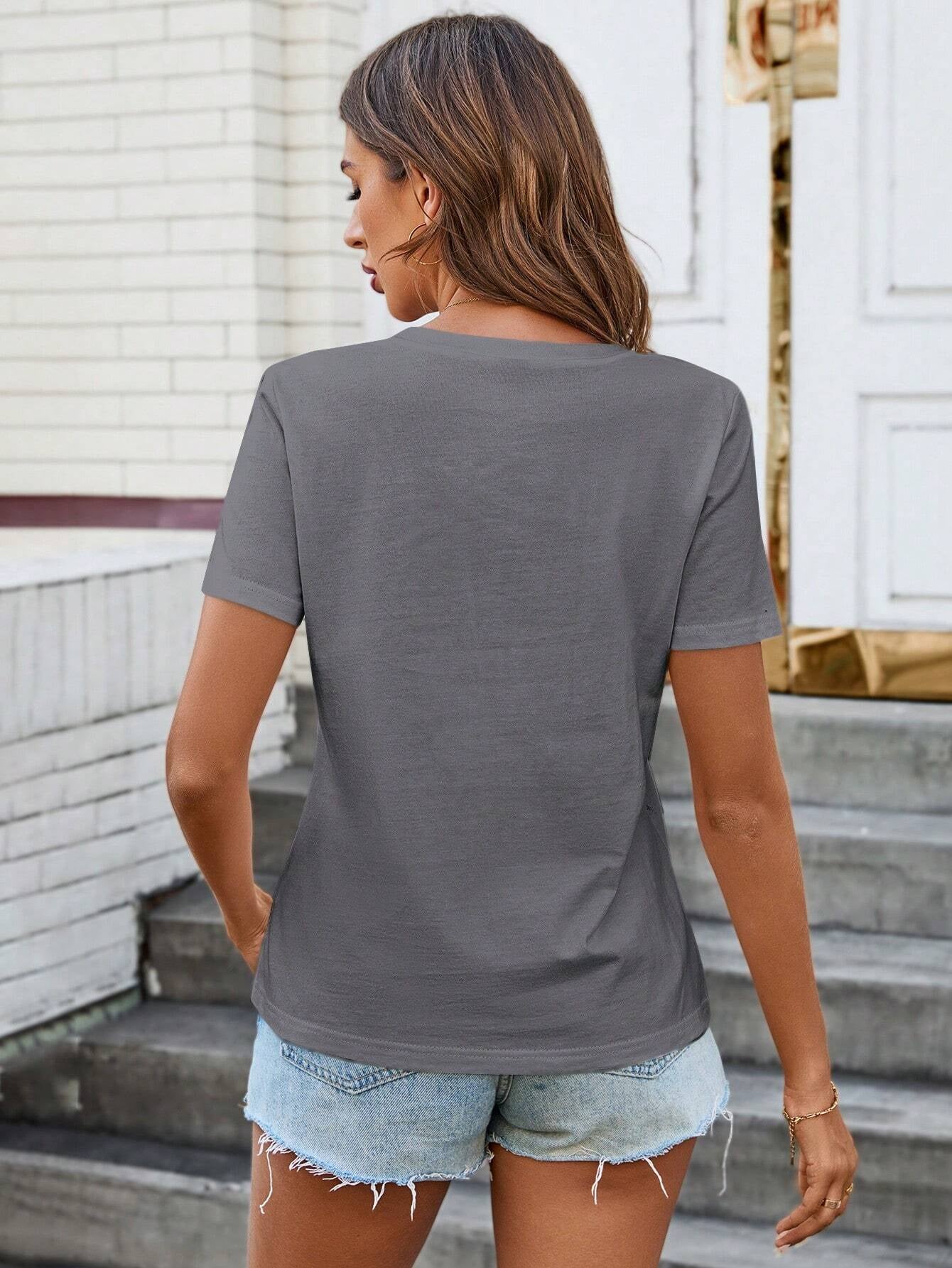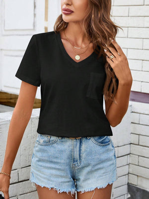 Casual V-Neck T-Shirt With Pockets