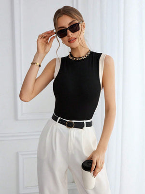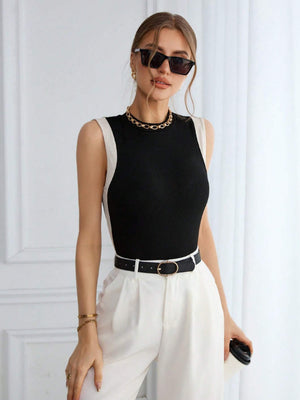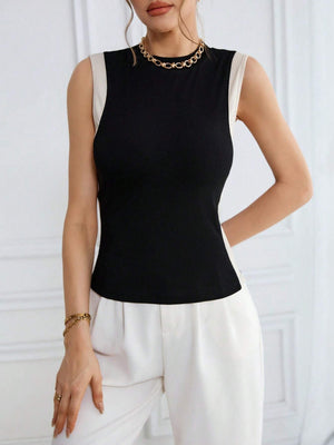 Stay cool and stylish this spring and summer with our Color Block Knit Casual Round Neck Tank Top. Featuring a playful black and white rib-knit design with contrast binding, this slim-fit tank hugs your silhouette for a flattering look. Its casual vibe and comfy round neckline make it perfect for sunny days and laid-back adventures.