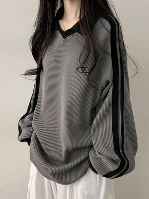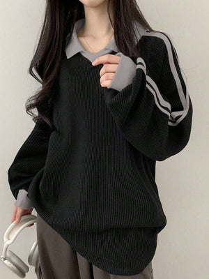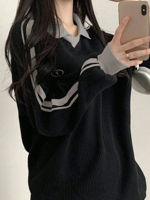 Make a bold statement with this collegiate-style sweatshirt featuring eye-catching contrast colorblock and striped patterns. The letter print design with contrast collar and binding creates a sporty, preppy look perfect for graduation season and daily wear.