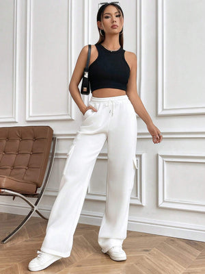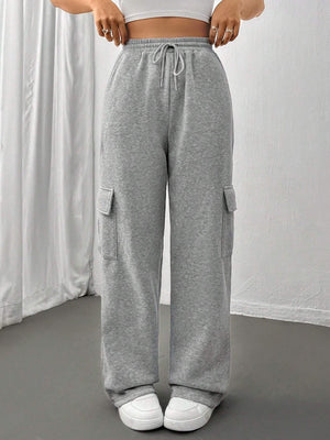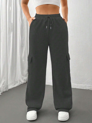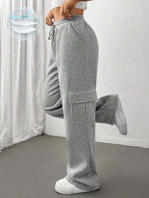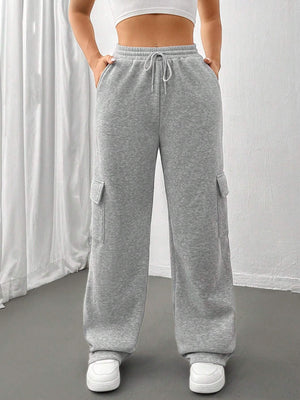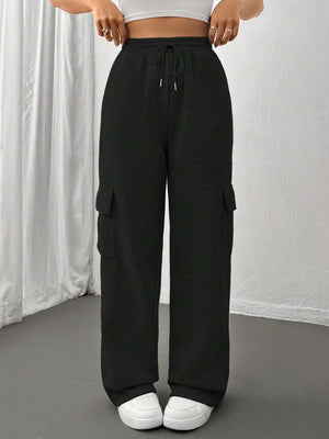 Flap Pocket Side Drawstring Waist Sweatpants