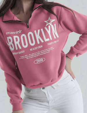 Serve up style with this sporty oversized sweatshirt featuring bold "BROOKLYN" letter prints that bring athletic-inspired aesthetics to your casual wardrobe. Perfect for commencement and graduation season celebrations or daily wear, this versatile half-zip pullover combines retro Brooklyn vibes with contemporary streetwear appeal.