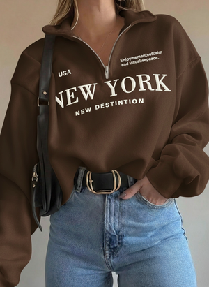 Serve up style with this sporty oversized sweatshirt featuring bold "NEW YORK" letter prints that bring athletic-inspired aesthetics to your casual wardrobe. Perfect for commencement and graduation season celebrations or daily wear, this versatile half-zip pullover combines retro New York vibes with contemporary streetwear appeal.