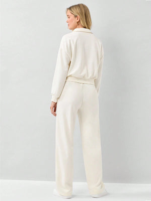 - Complete 2-piece set: half zip sweatshirt and drawstring pants