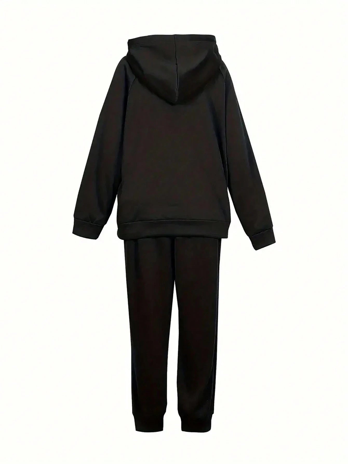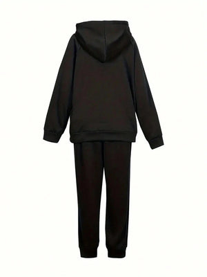 Heart Print Long Sleeve Hooded Sweatshirt And Drawstring Pants Casual Outfit