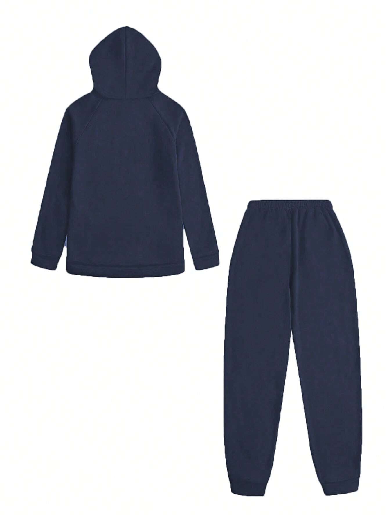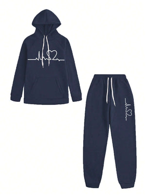 Home Heart Print Long Sleeve Hooded Sweatshirt And Drawstring Pants Casual Outfit