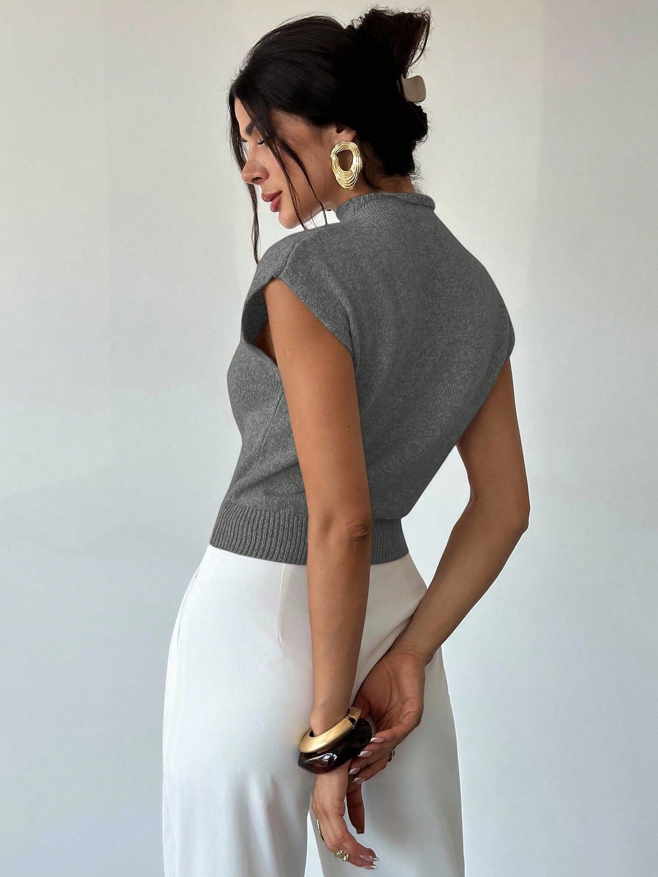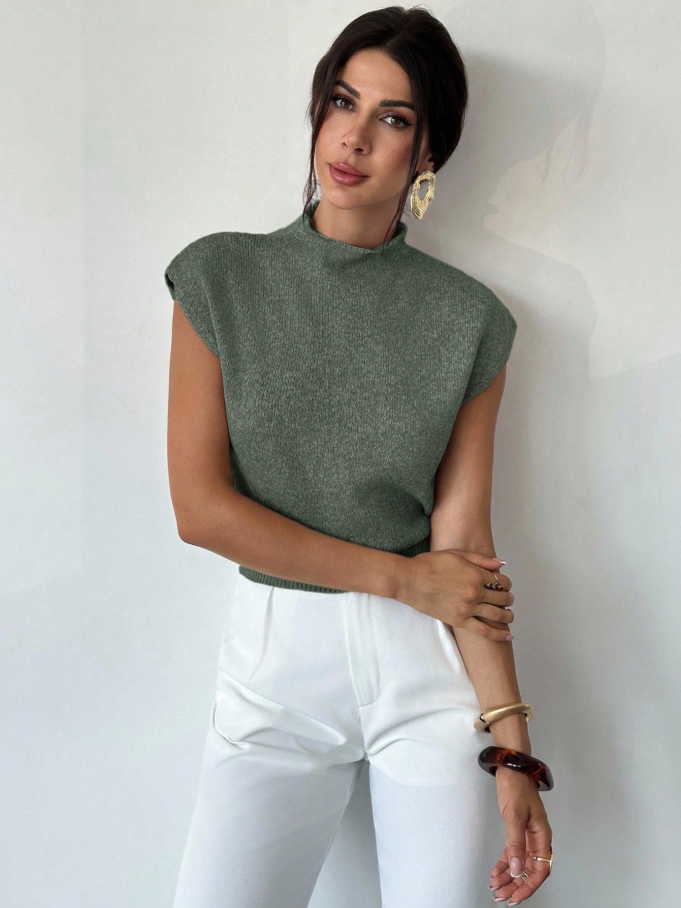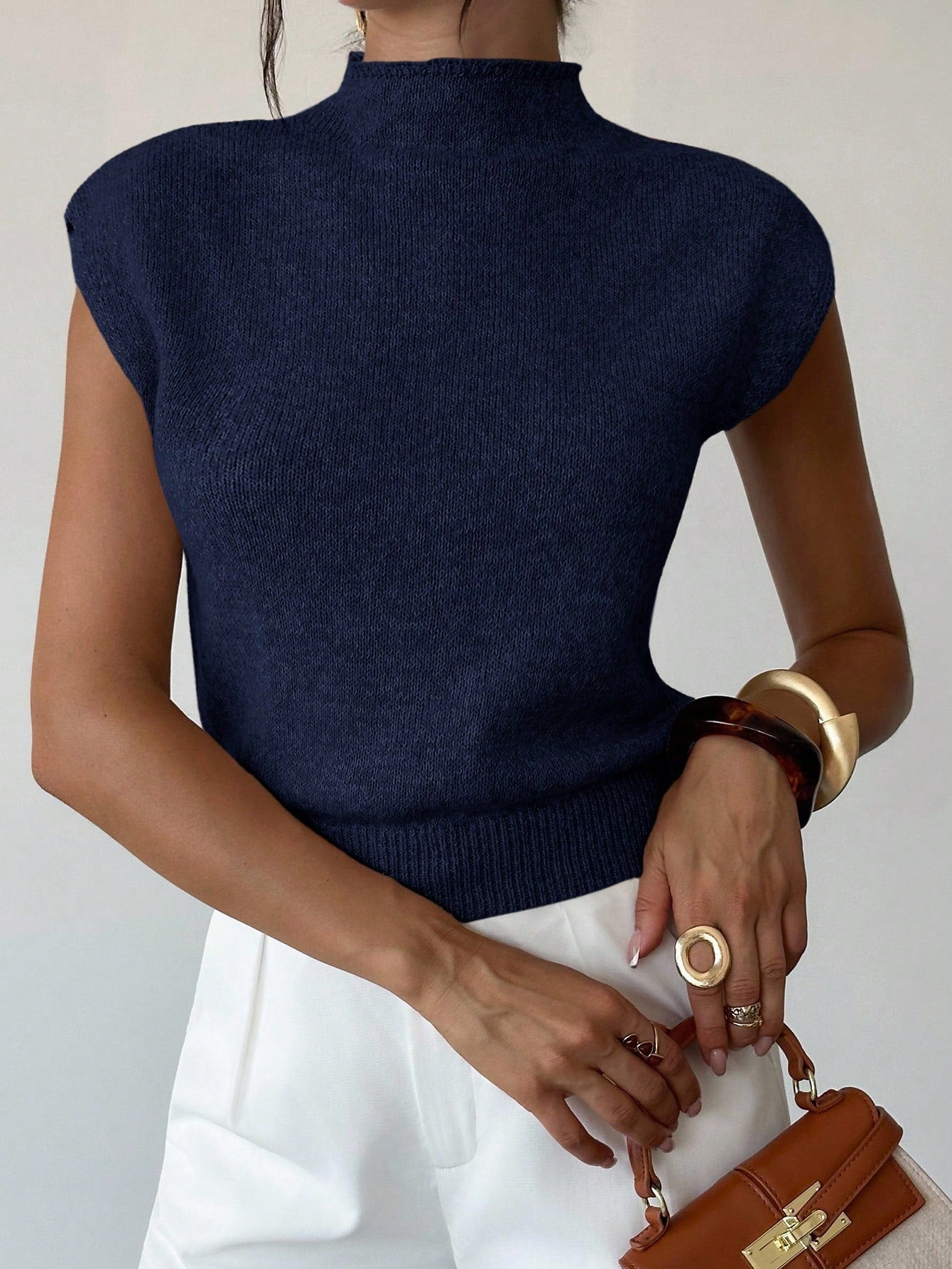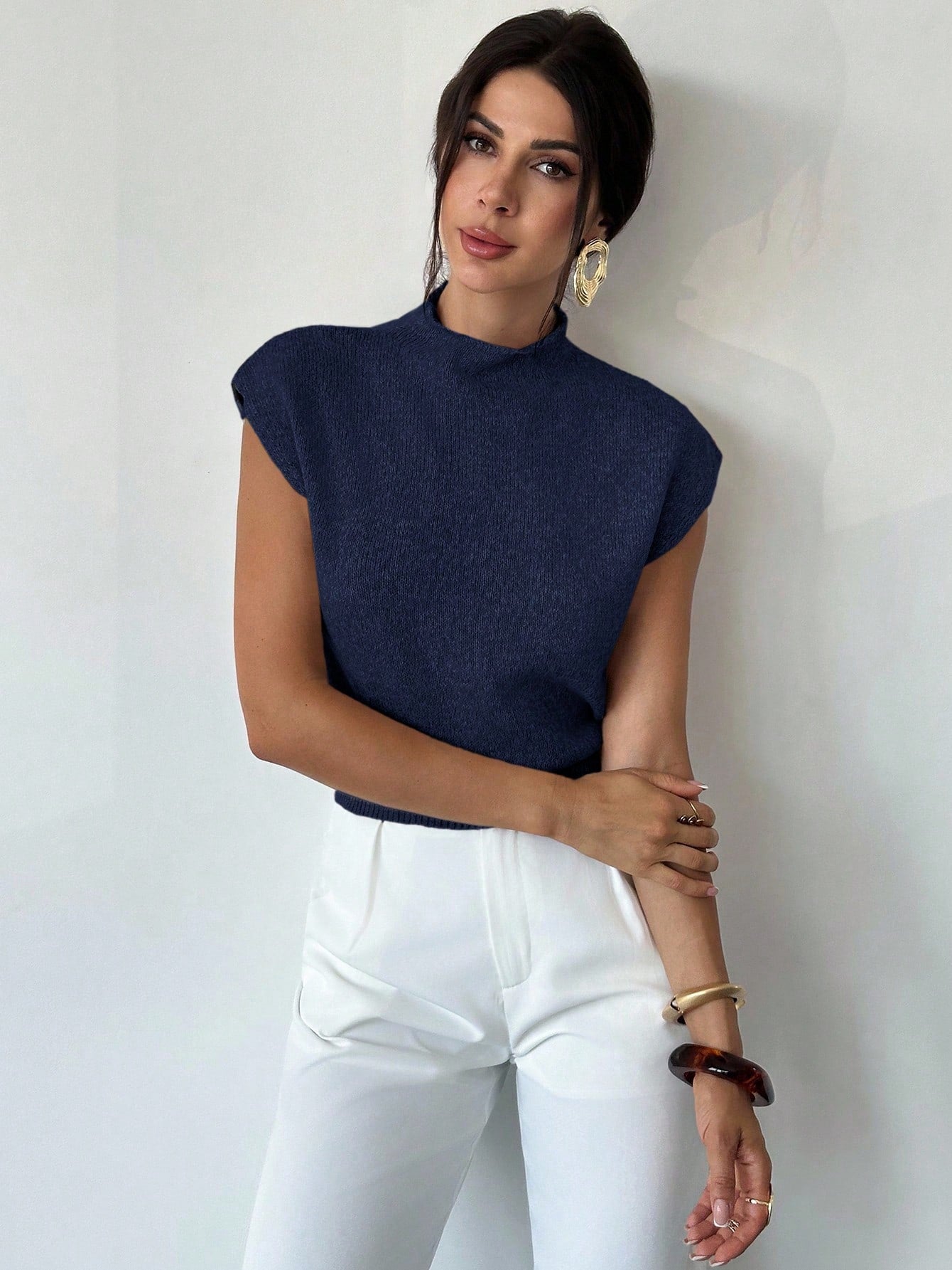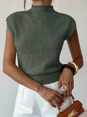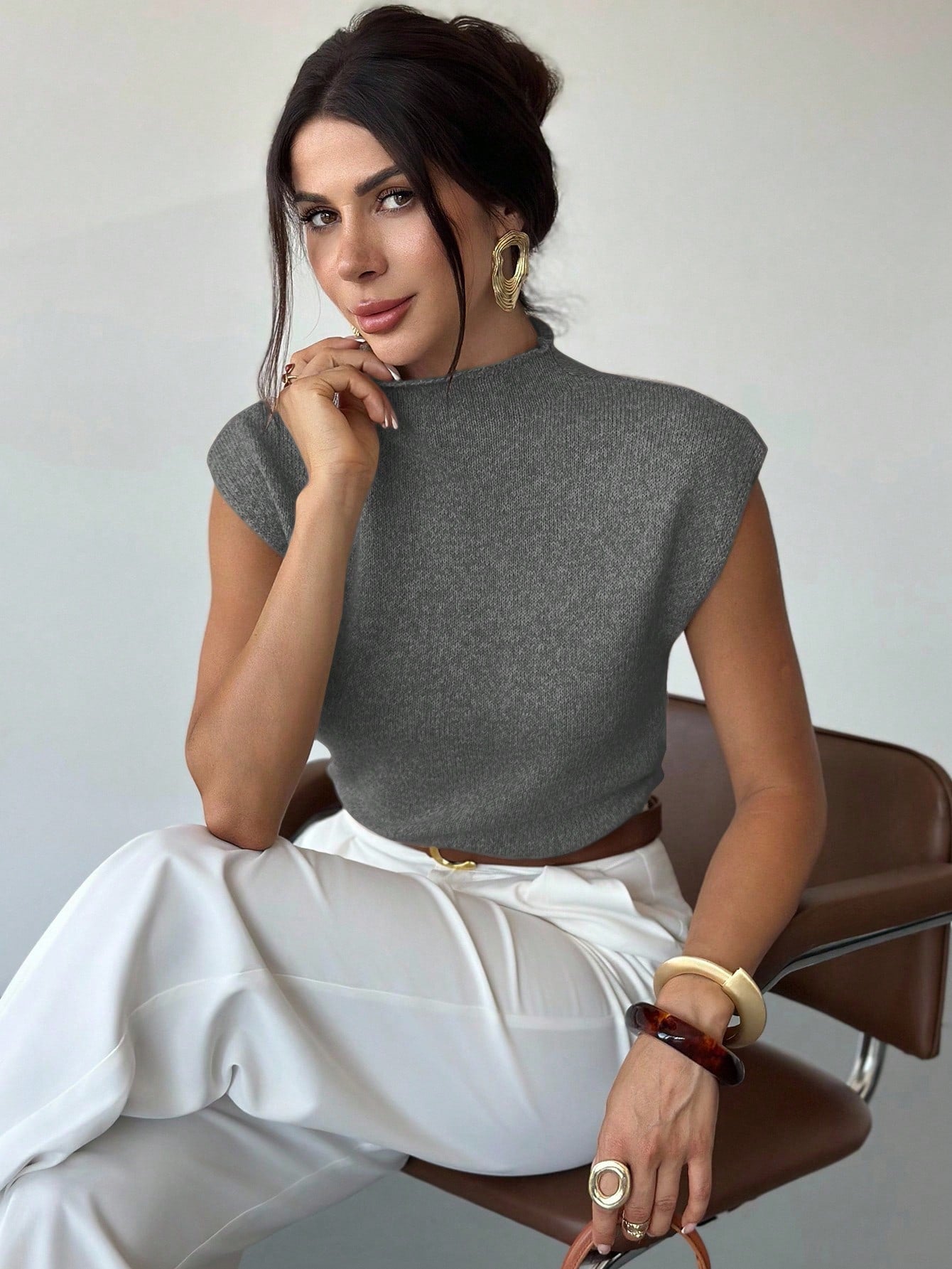 High Neck Loose Casual Versatile Sleeveless Knit Sweater