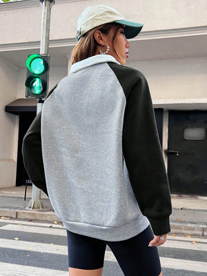 Letter Graphic Contrast Collar Raglan Sleeve Polo Neck Sweatshirt