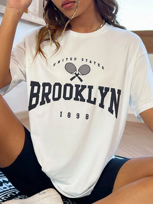 Letter Graphic Drop Shoulder Tee Graphic Tees Women Tops