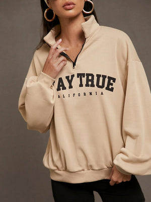 Letter Graphic Quarter Zip Drop Shoulder Sweatshirt, Long Sleeve Tops