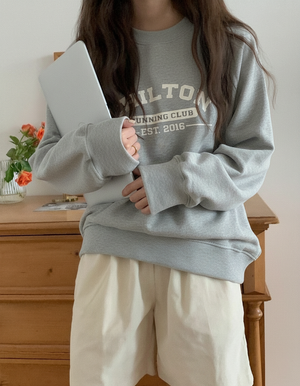 Letter Graphic Thermal Lined Sweatshirt Chilton Running Club Long Sleeve Tops Graduation