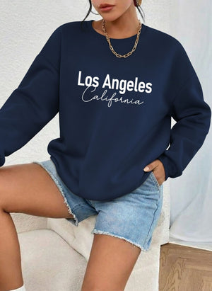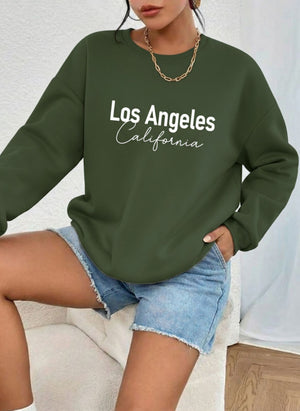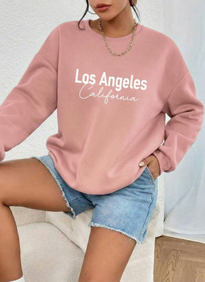 Letter Graphic Thermal Sweatshirt with Letter Print LOS ANGLELES Slimming Long-Sleeve Top