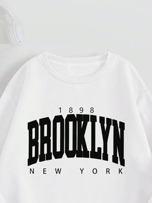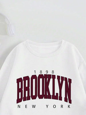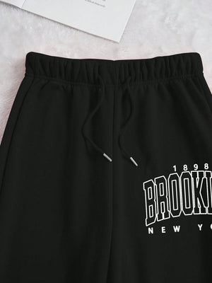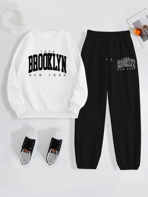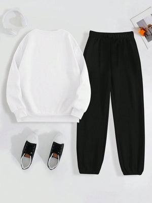 Letter Print Drop Shoulder Long Sleeve Sweatshirt And Sweatpants Casual 2pcs Set
