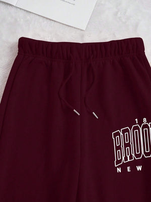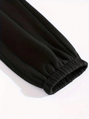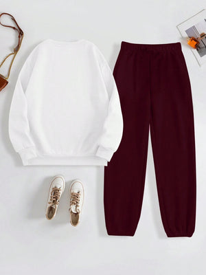 Celebrate your achievements in ultimate comfort with this stylish two-piece set featuring a letter print sweatshirt and matching sweatpants. Perfect for commencement and graduation season, this coordinated ensemble combines casual comfort with contemporary style, making it ideal for celebrating milestones or enjoying relaxed everyday wear.
