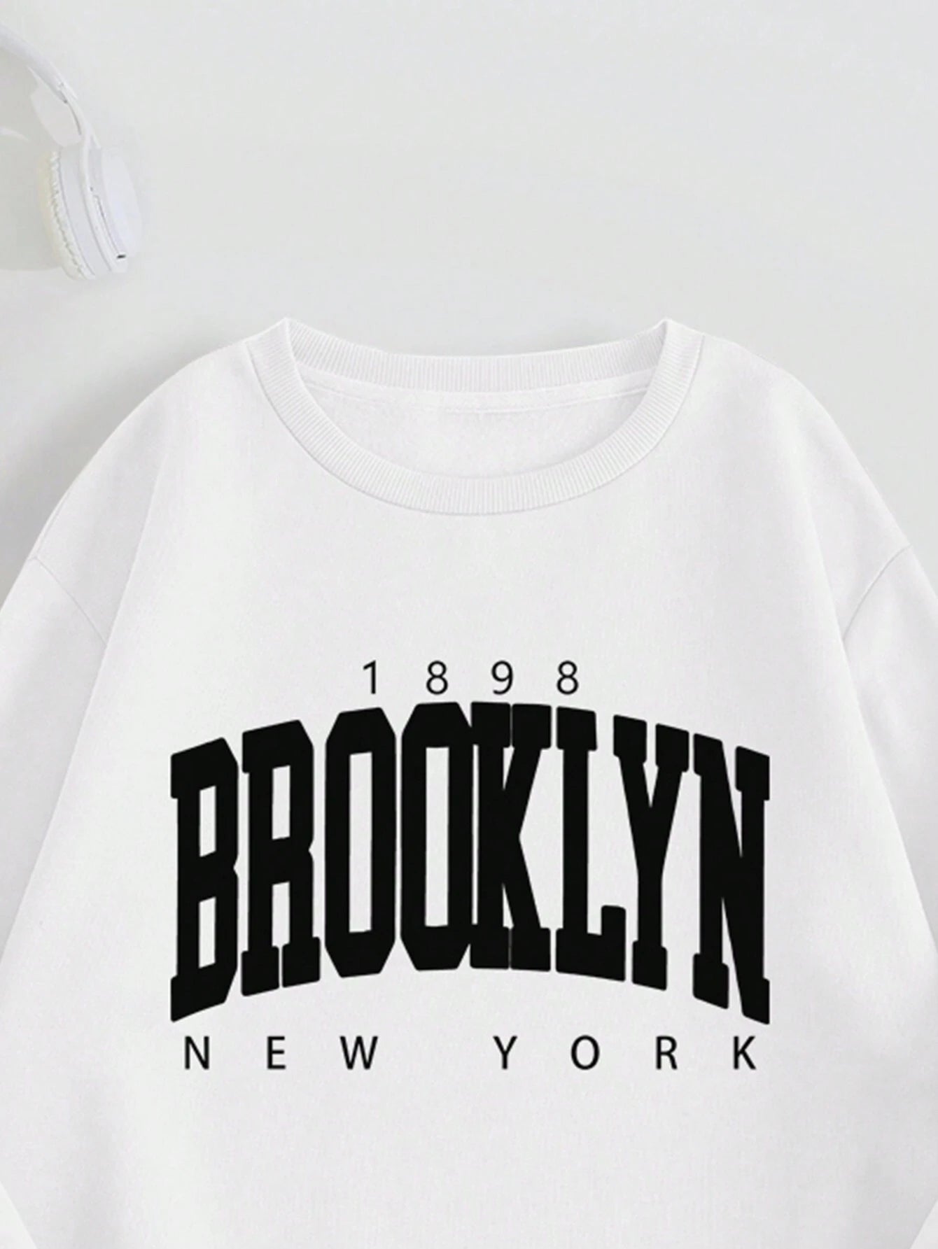 - Drop shoulder construction on sweatshirt for relaxed silhouette