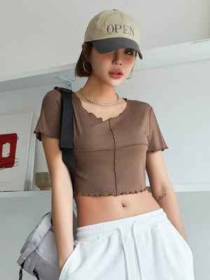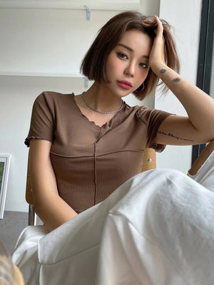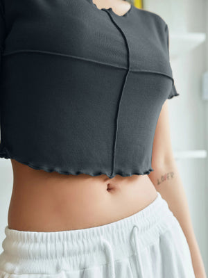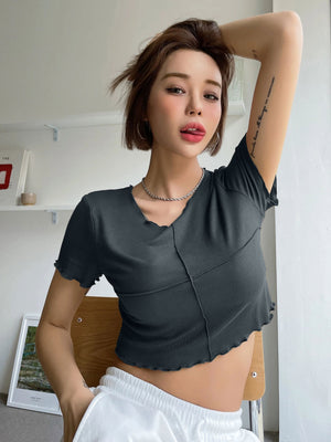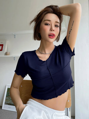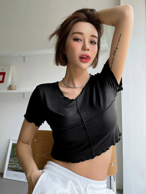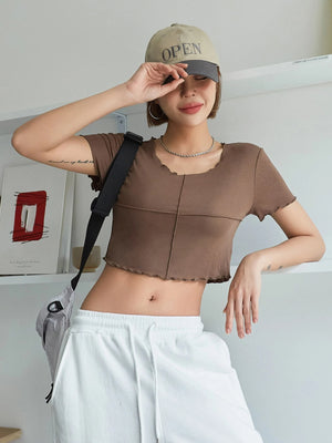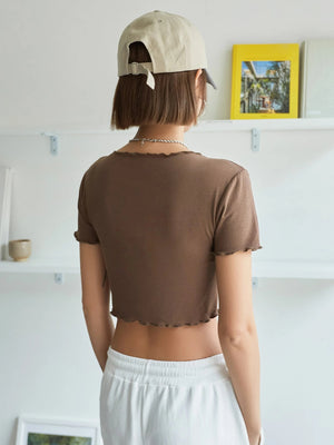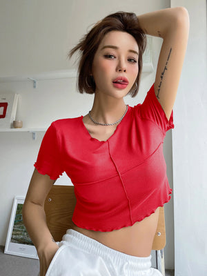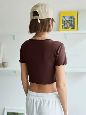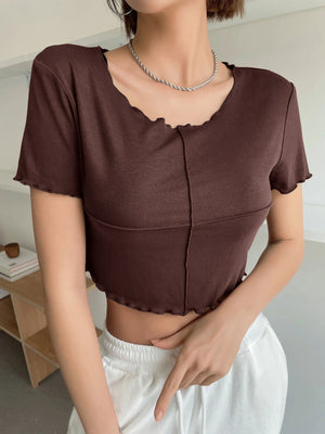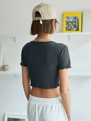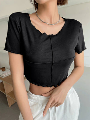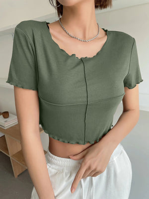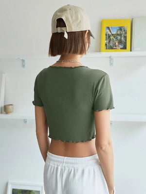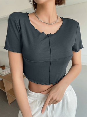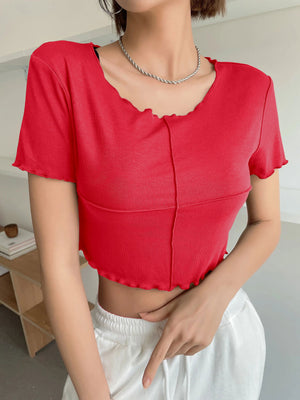 Elevate your casual look with our T-shirt cuts in lettuce shape. Crafted from a luxurious blend of viscose and elastane, this tee features a scoop neckline and short sleeves with a medium stretch for a comfortable, adjusted fit. The lettuce shape adds a touch of artistry to this everyday essential.