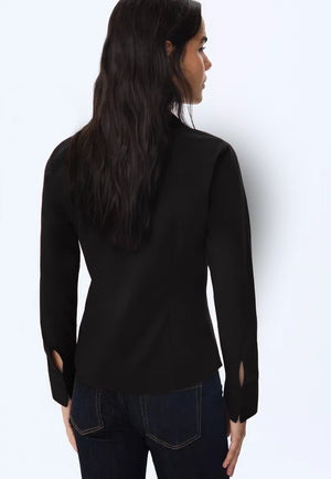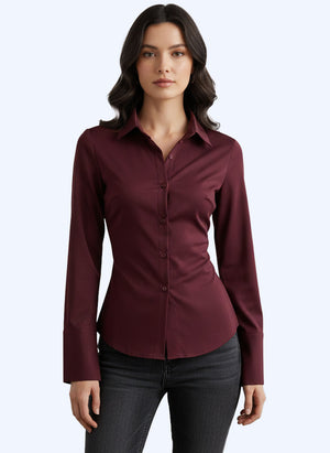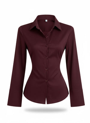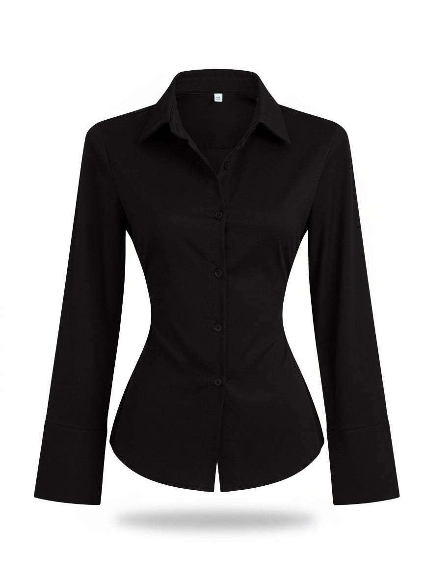 Elevate your professional wardrobe with this sophisticated button-down blouse that features a flattering slim-fit silhouette designed to taper beautifully at the waist. Perfect for office wear or polished casual occasions, this elegant shirt combines timeless design with contemporary details for a refined, put-together look.