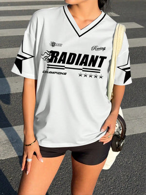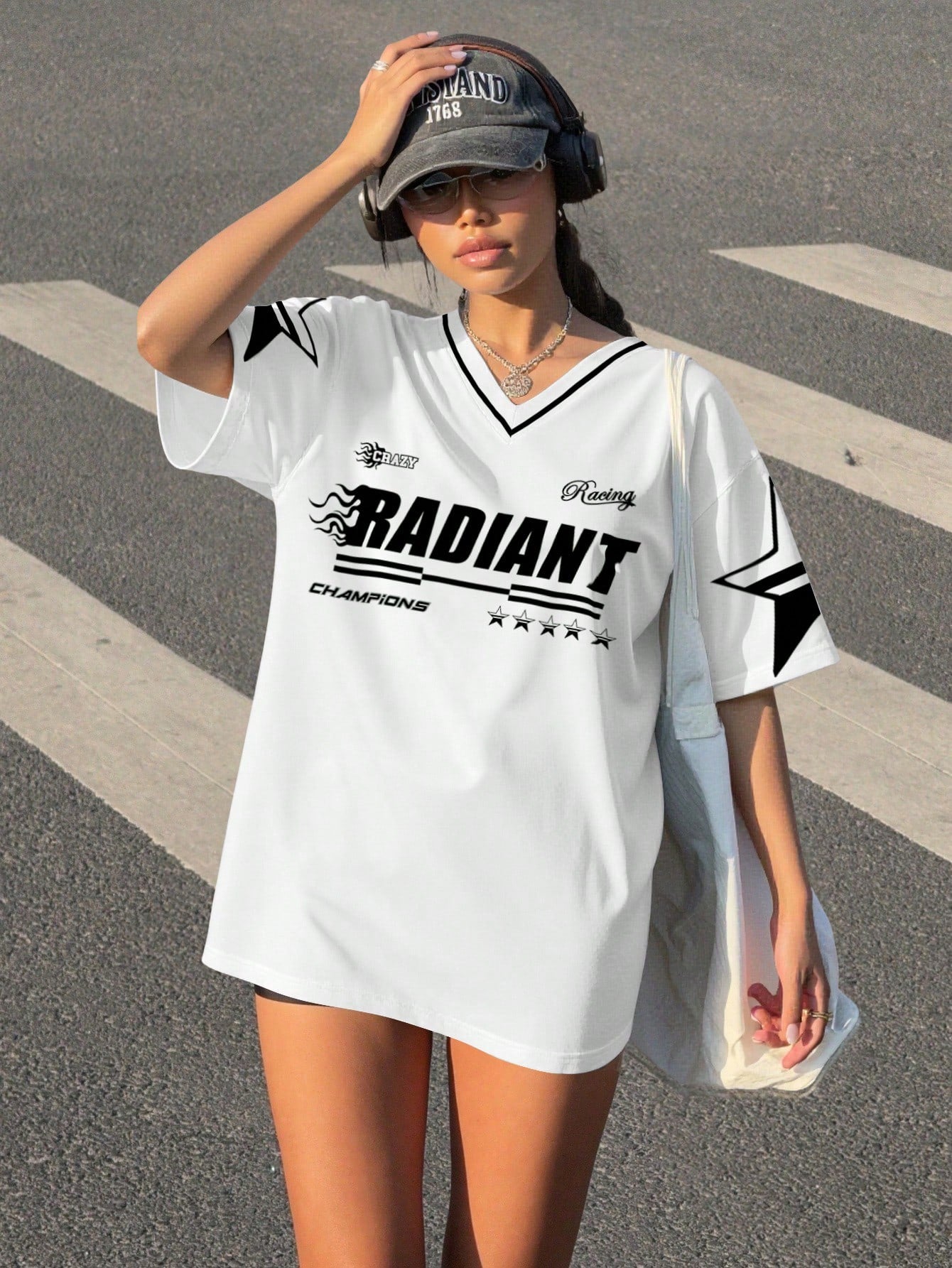 Loose V-Neck Letter Print Casual Short Sleeve T-Shirt