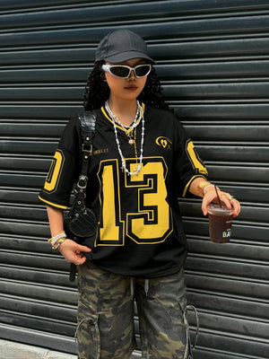 Celebrate your unique style with this bold plus-size streetwear tee that features an eye-catching digital all-over print design. Perfect for commencement and graduation season celebrations, this oversized V-neck t-shirt combines colorblock patterns, letter graphics, and striped details for a dynamic, contemporary look that stands out from the crowd.