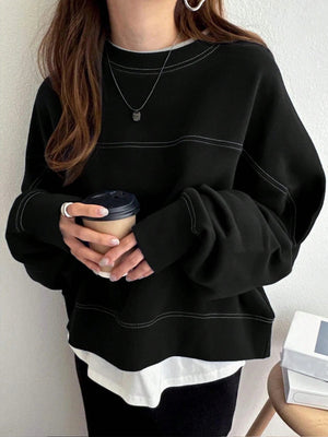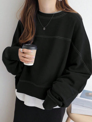 Round Neck Contrast Color Loose Oversized Pullover Sweatshirt, Autumn & Winter