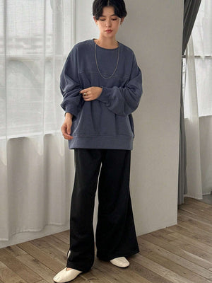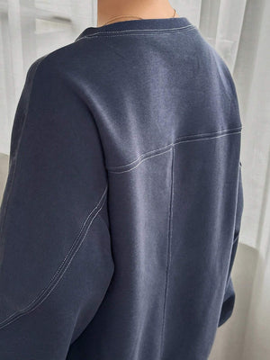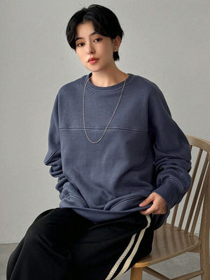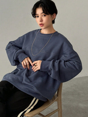 Stay cozy and stylish this autumn and winter with this oversized pullover sweatshirt featuring a round neck and contrast color design. The drop shoulder construction and loose fit create a relaxed, contemporary silhouette perfect for layering during cooler months.