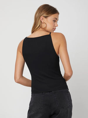 This sleeveless top with fine shoulder straps is your go-to for effortless style and comfort. Its delicate straps add a flirty touch, perfect for sunny days or layering under your favorite jacket. Light and breezy, it keeps you cool while turning heads wherever you go. Play up your look with this charming wardrobe essential!
