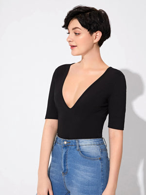 Turn heads with this Deep V-Neck Short Sleeve Plunging Tunic Top, designed to keep things flirty and fun. Featuring a sexy backless detail and a relaxed drop shoulder fit, it’s perfect for beach days or casual outings. The slim fit and plunging neckline add a playful edge, while the plain pattern keeps it effortlessly chic. Slip into this loose tee and let your style shine!