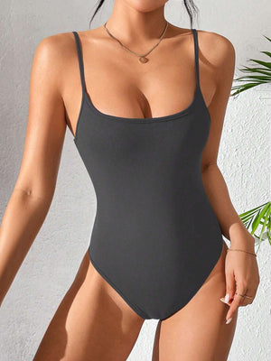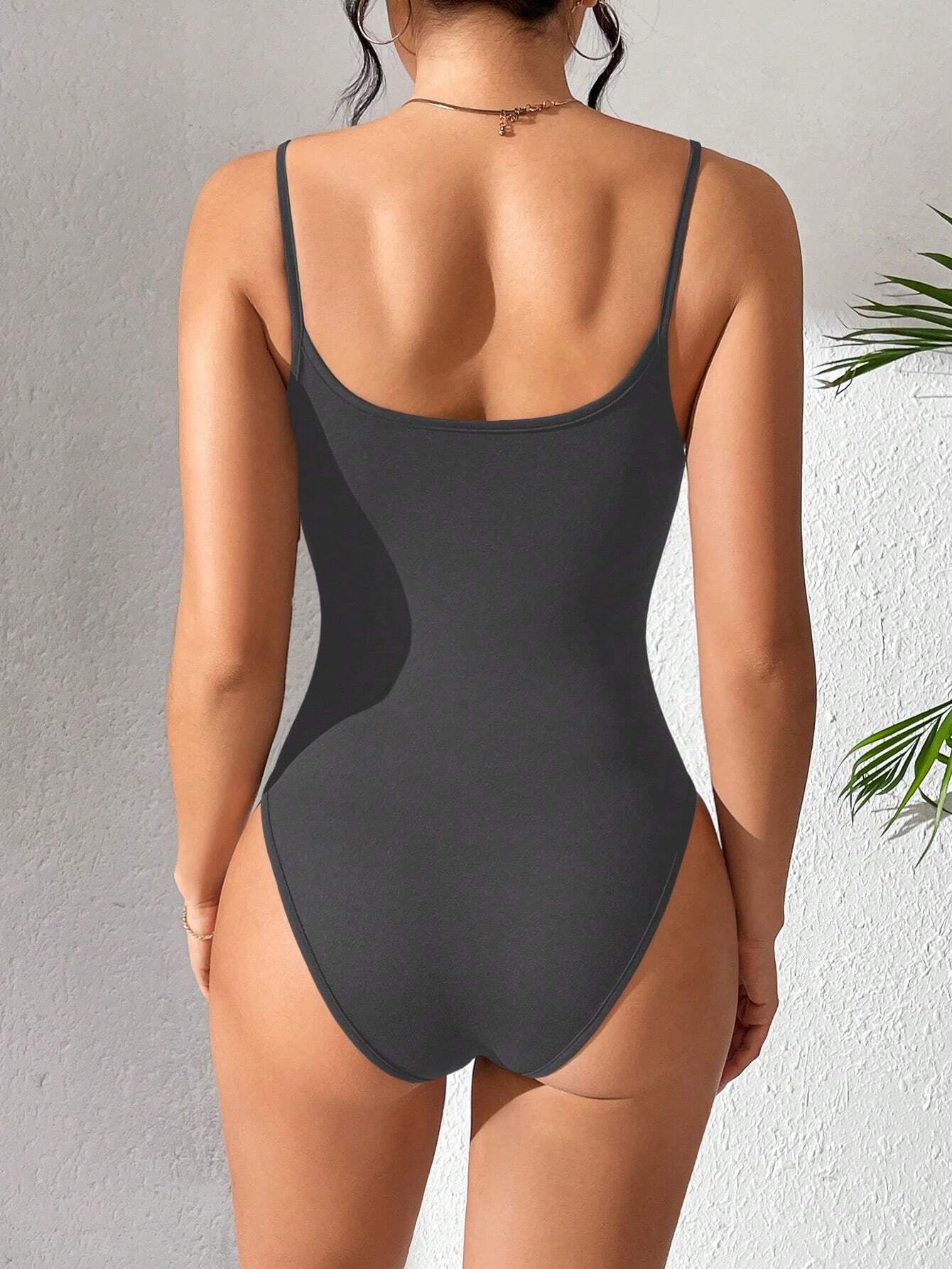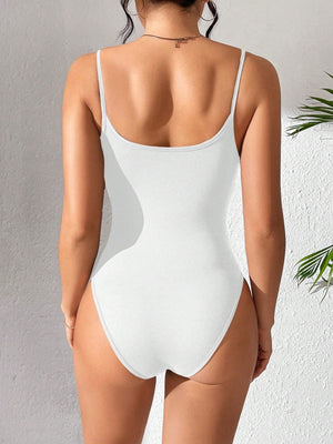 Solid Color Backless Spaghetti Strap Bodysuit